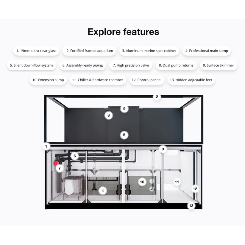 Das Red Sea Reefer-S 850 G2 Aquarium wurde entwickelt, um Ihnen die Freiheit zu geben, Ihr Traumriff zu gestalten. Es kombiniert die bewährte Reef-Spec-Infrastruktur mit der Flexibilität, Ihre bevorzugte Hardware zu installieren. Zu den herausragenden Merkmalen gehören: